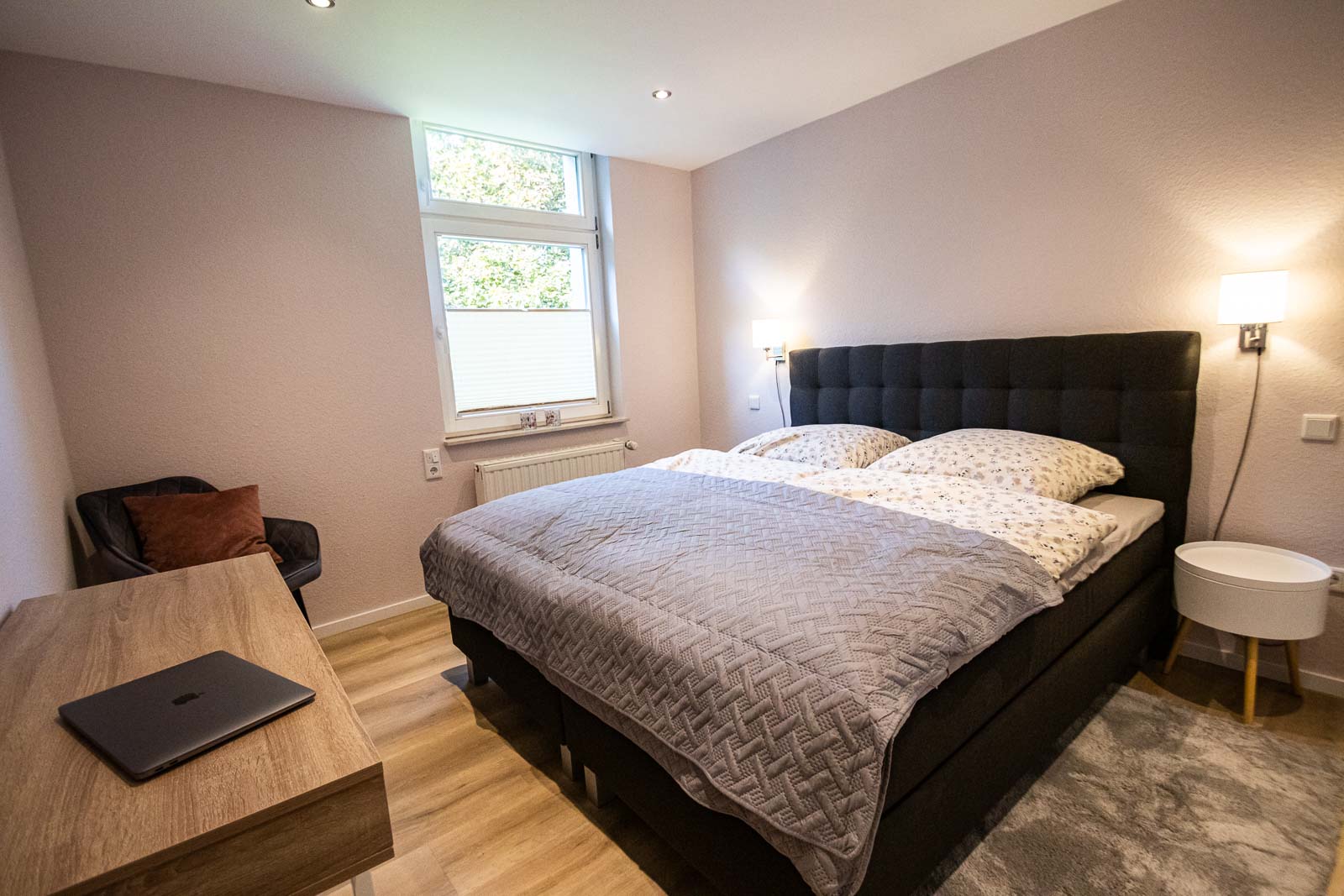 Die Nichtraucher-Wohnung ist komplett und hochwertig ausgestattet, so dass es an nichts fehlen wird. Im Kinderzimmer ist ein kleiner Schreibtisch zum Malen und Basteln vorhanden. Ein Trampolin, Schaukeln und Sandkasten warten im Carport darauf bespielt zu werden.