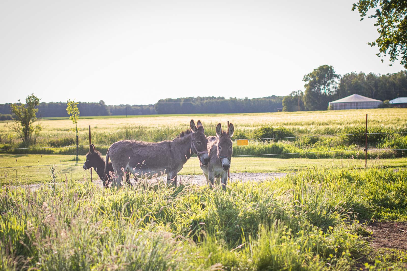 Vielleicht lernen Sie bei Ihrem Besuch auch diese Vierbeiner kennen? Die drei Esel wohnen direkt auf der Wiese nebenan.