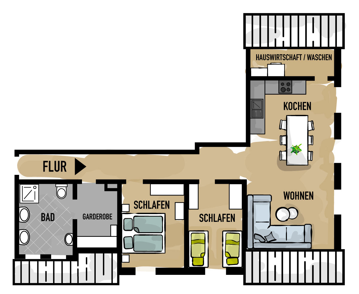 Die Nichtraucher-Wohnung ist komplett und hochwertig ausgestattet, so dass es an nichts fehlen wird. Im Kinderzimmer ist ein kleiner Schreibtisch zum Malen und Basteln vorhanden. Ein Trampolin, Schaukeln und Sandkasten warten im Carport darauf bespielt zu werden.