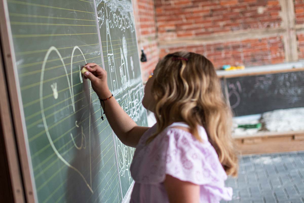 Geschützt vor Wind und Wetter kann hier getobt und gespielt werden. Die große Schultafel ist Magnet für junge Künstler/innen während im Sandkasten gebaggert und gebuddelt wird. So richtig austoben kann man sich auf dem großen Trampolin. Viel Spaß!
