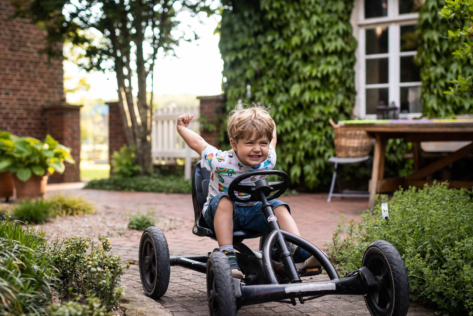 Auf dem großen Hof ist Platz für alle – eine Runde mit dem Roller drehen oder eine Partie Federball spielen, hier kommt sich niemand in die Quere.